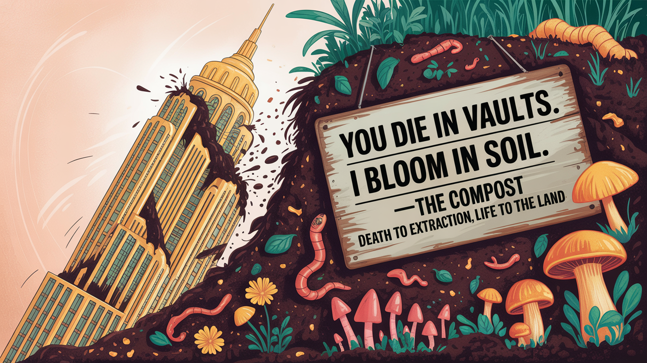 From banks. From markets. From the dead language of profit.